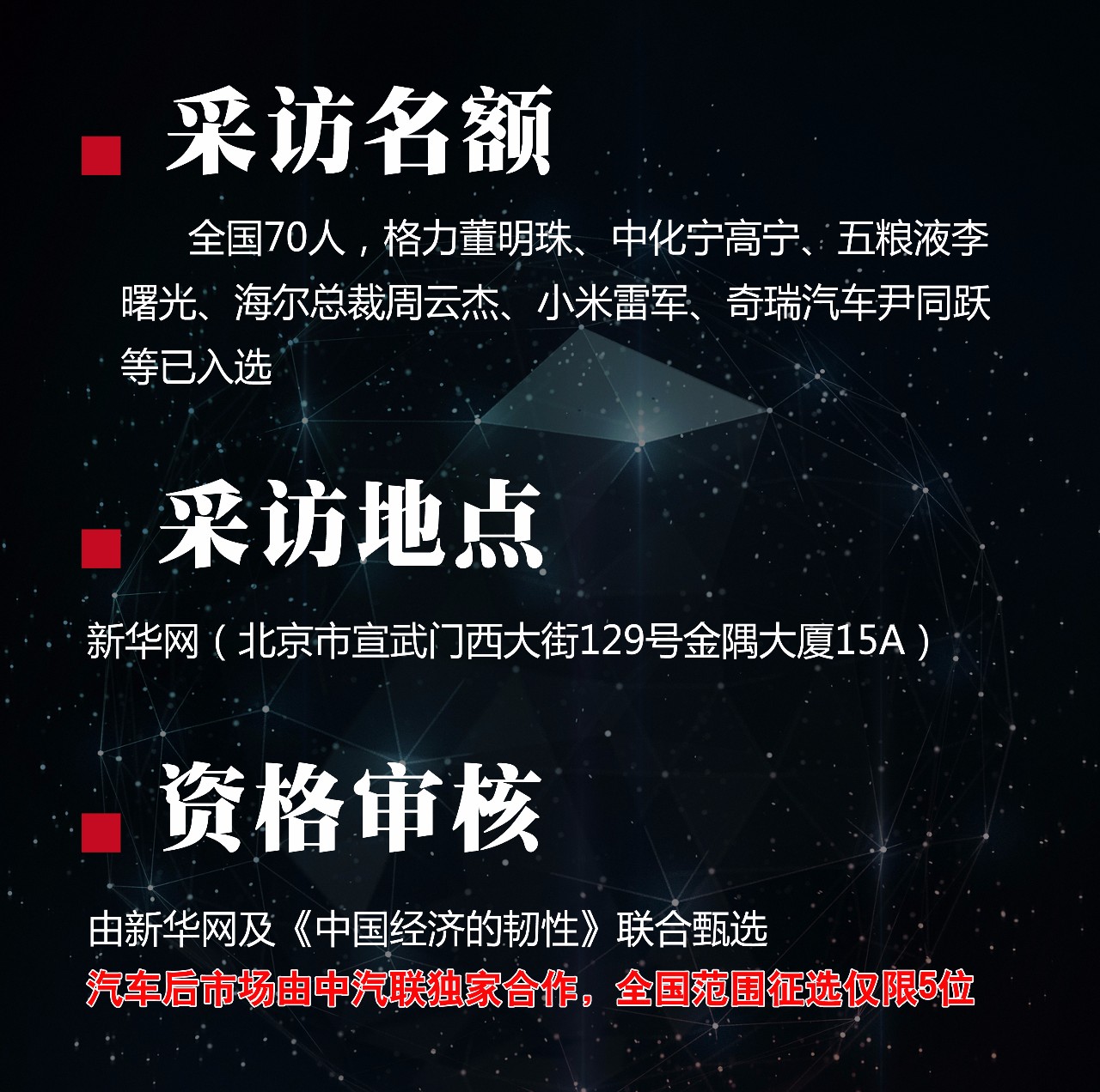 新華網&中汽聯在全國征選匠心智造70人,向建國70年致敬!