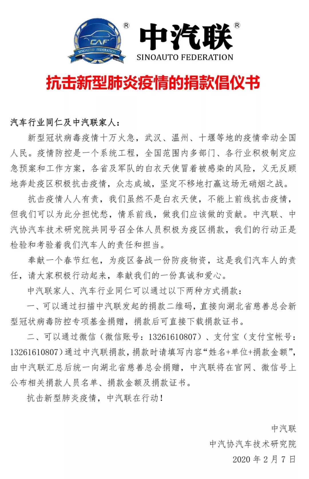 中汽聯(lián)先后三次發(fā)起抗疫募捐倡議書(shū)