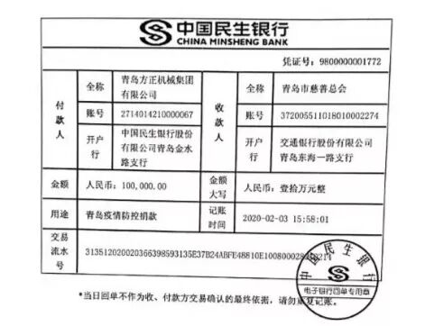 71、濟(jì)南旭勝汽車零部件有限公司 捐款100元