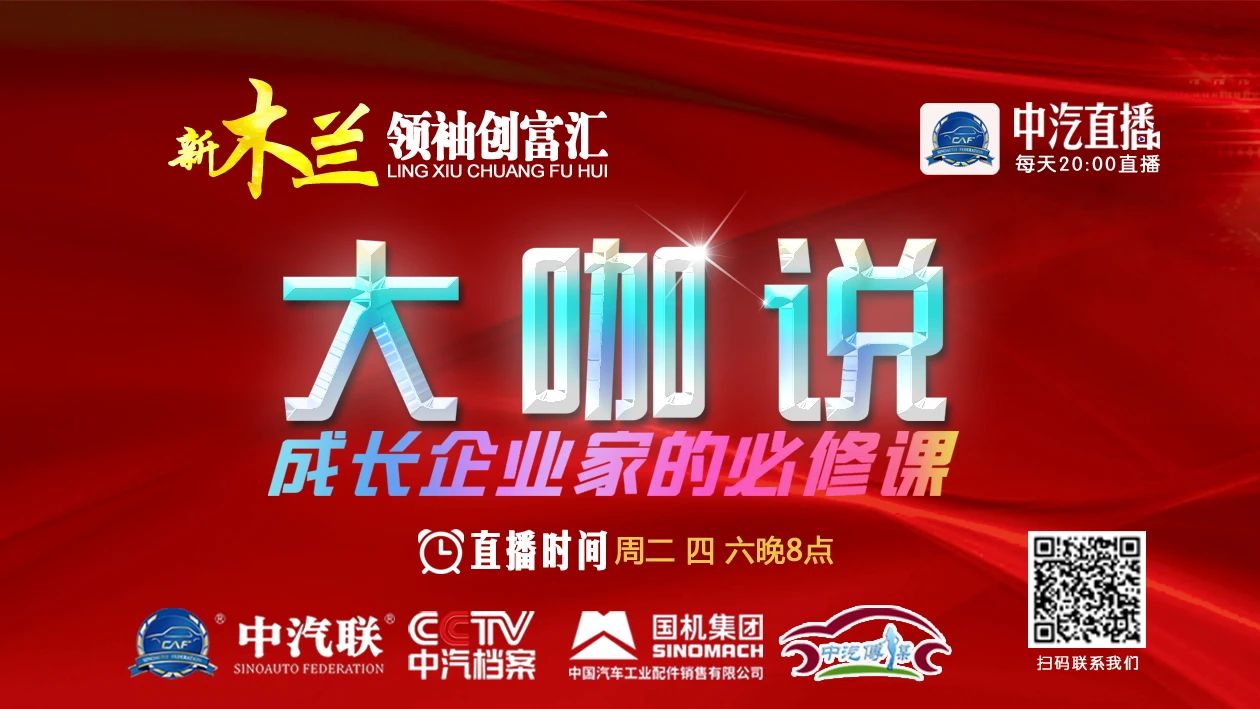 汽車行業有這么一群人,他們簡單樸素,充滿智慧,不遺余力,尋找著各式各樣的機會,為國家貢獻可觀的稅收,創造無數的就業崗位,承擔著社會責任,但是他們也是最容易被人們所忽略的群體,很少受到公眾和媒體真正的關注,傾聽他們背后所承受的辛酸、壓力以及難以忍受的焦慮他們需要在一起,需要有個組織,有個平臺,一起智慧共享、資源共享、資金共享、學習交流;為此,中汽聯、CCTV《中汽檔案》及中汽配成立領袖智富匯”,開通《大咖說》直播欄目——構建一個充滿正能量、充滿夢想,極具感召力的創富者聚合平臺。