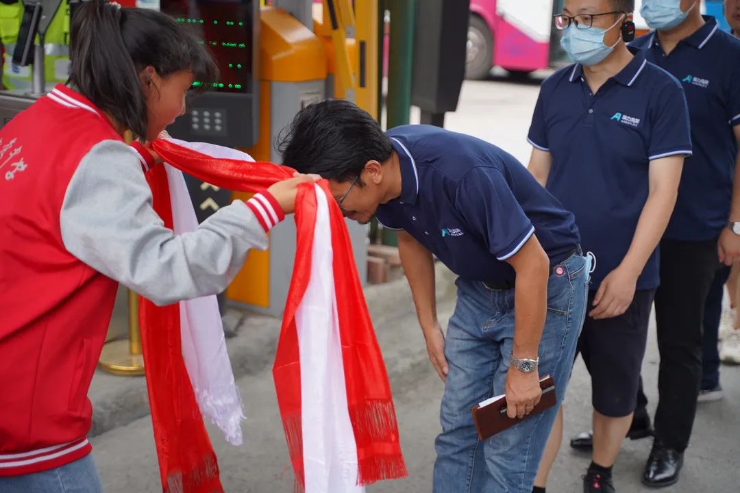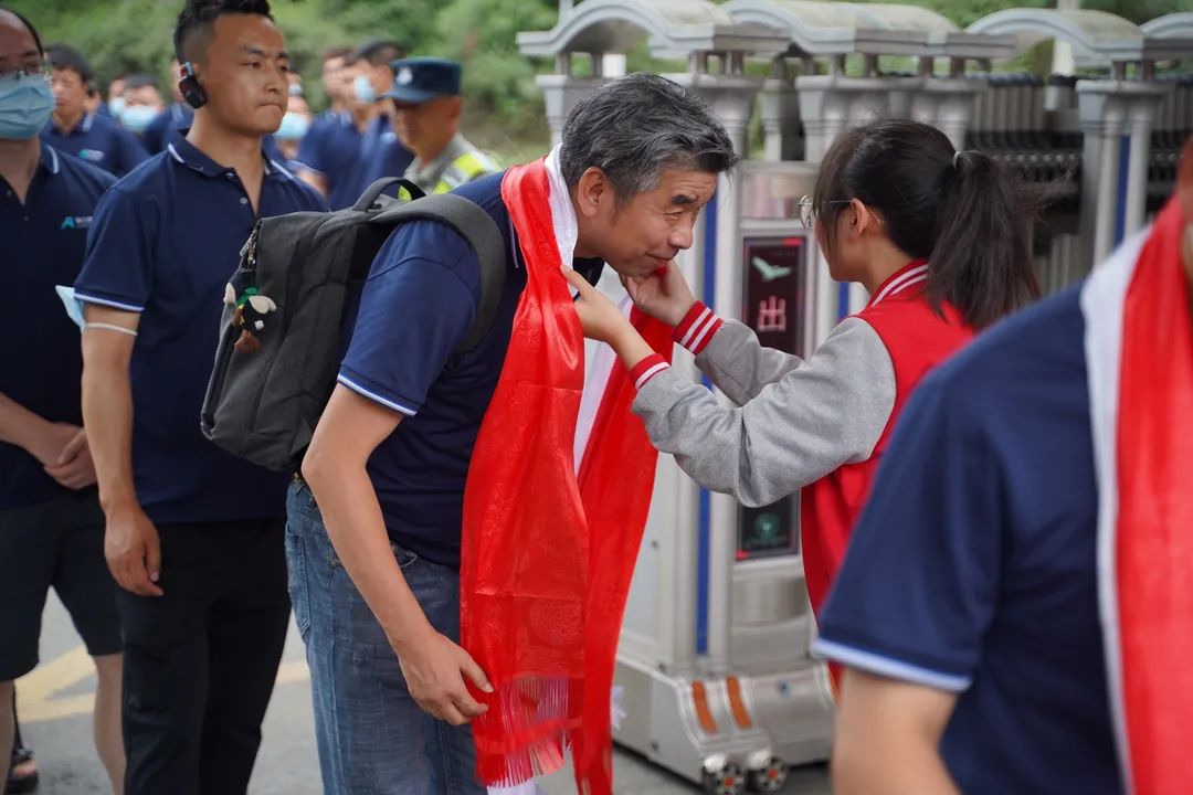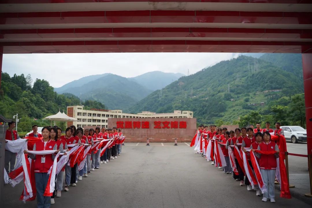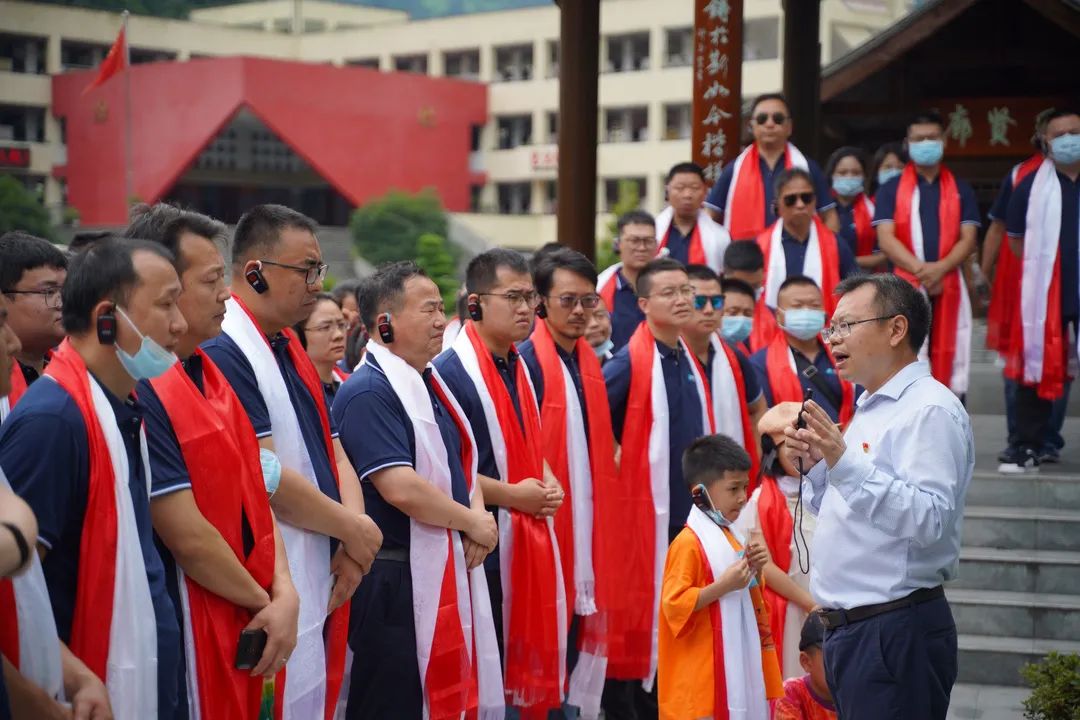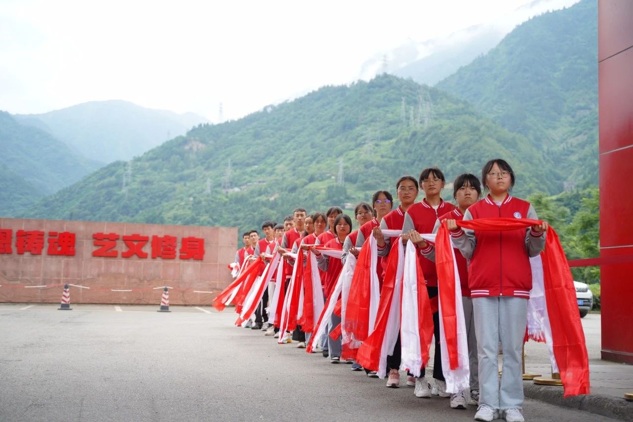 與會人員在校門口接受了這所藏、羌學校學生們敬獻的哈達和羌紅,從學校大門到教學樓,一條長長的走廊、矗立在過道中的烈士方杰老師雕像,在校長熊作富先生聲情并茂的訴說中,所有人員感受到了在大難面前民族的力量和大無畏精神。