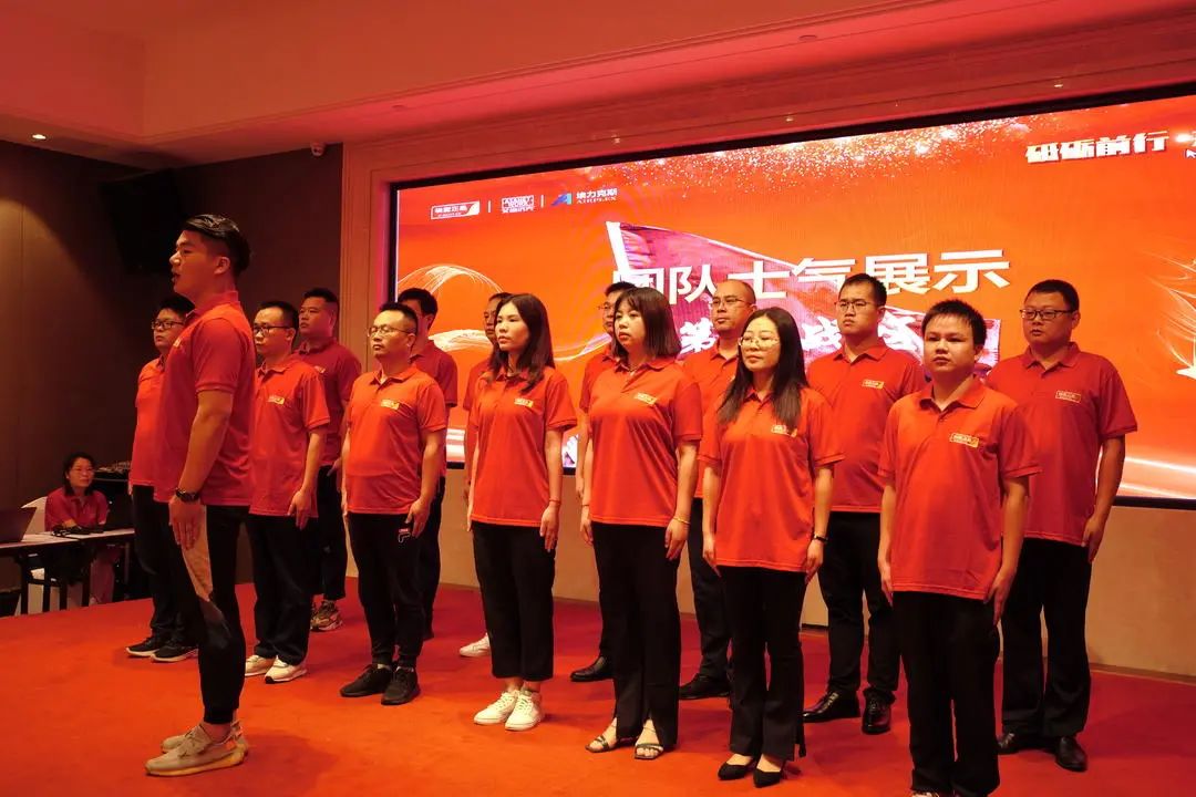 接著,象征著極配人意氣風發精神面貌的團隊士氣,由全體店長向所有聯盟公司股東們做精彩展示,在震耳欲聾的口號聲及整齊劃一的正步中,宣告本次會議正式開始。