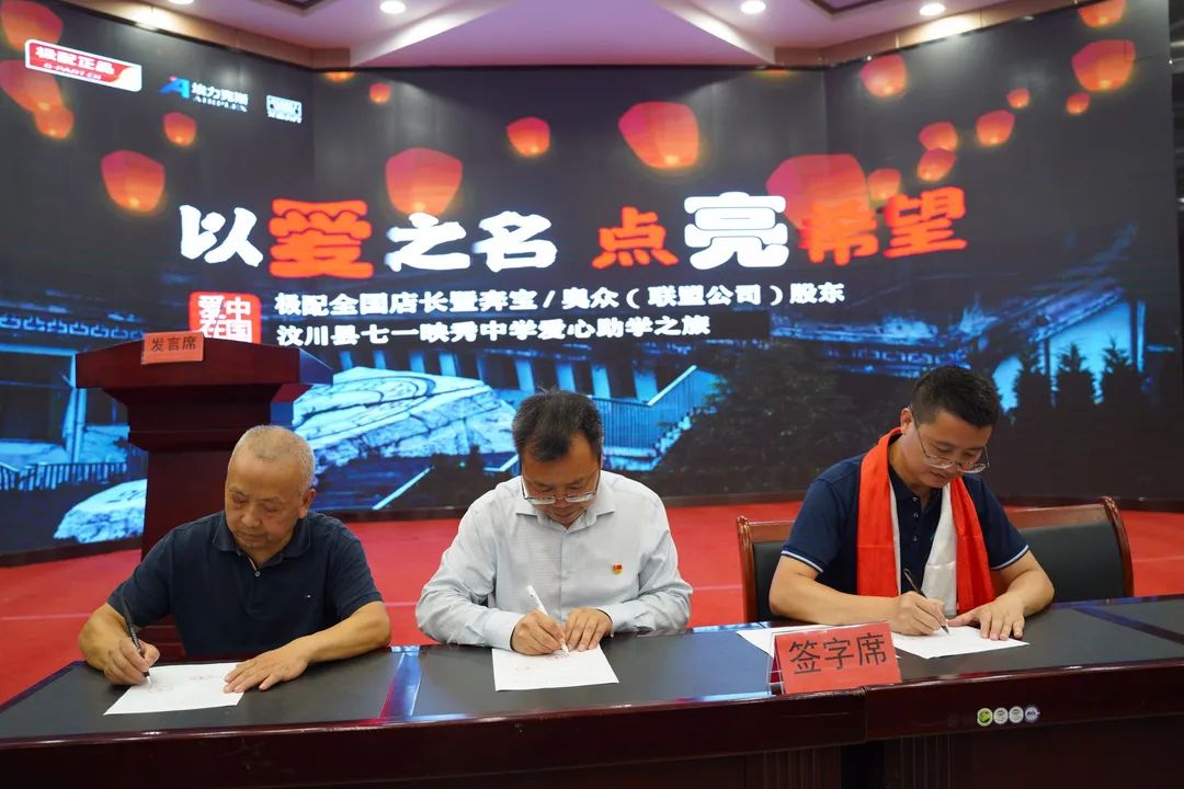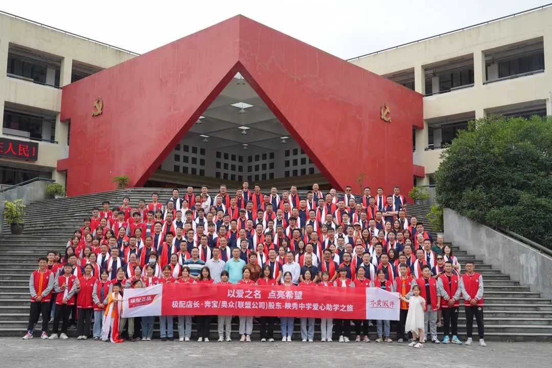 在汶川縣教育局、教育基金會、映秀鎮鎮政府等當地領導的引導下,極配總經理邱立強帶全國店長及兩個聯盟公司股東140余人,在映秀中學的報告廳,一場“以愛之名,點亮未來”極具意義的捐贈儀式在此舉行,為映秀中學貧困學生及優秀教師奉獻了自己的愛心及對英雄學校的深深敬意!