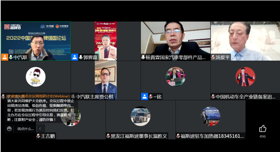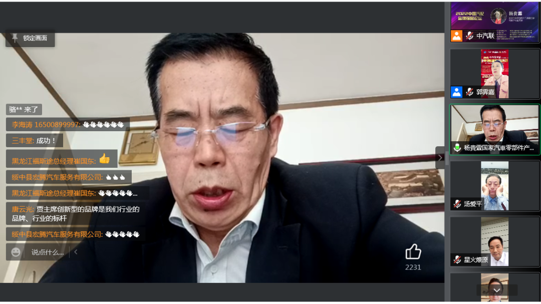 2022中國汽配品牌強國論壇由中汽聯(lián)、中機維改、中汽配等機構共同主辦;由哈爾濱宏博達汽車配件有限公司、上海萬超汽車天窗有限公司、黑龍江福斯途汽車服務有限公司聯(lián)合主辦;由中國(陽谷)車品小鎮(zhèn)、華勝集團、上海燎申集團、吉林欣瑞邦汽車有限責任公司、安徽英克爾汽車零部件有限公司、北京長宏企鵝助劑有限公司友情協(xié)辦;由吉林優(yōu)佳特新能源科技有限公司、上海京滬投資管理有限公司、青州軍輝駐車新能源有限公司、山東科佳智能裝備城、鄭州尊生汽車零部件制造有限公司、滄州環(huán)銳精密鑄造有限公司、遼寧浩億達科技有限公司、河南頤爾福新能源科技有限公司特別支持;由邯鄲市達維汽車維修有限公司、沈陽樂達汽車服務有限公司、黑龍江省海濤汽車銷售服務有限公司、哈爾濱玉鑫兄弟科技有限公司、滄州守諾金屬制品有限公司友情贊助;由德州市鑫雙恒汽車服務有限公司、浚縣李春亮汽車維修門市部 、滄州春立汽車服務有限公司、臨沂富裕汽車服務有限公司、綏中縣宏騰汽車服務有限公司、榆樹市鑫運程汽車服務限公司、綏中縣鑫發(fā)汽車服務有限公司、臨清市浩航汽車服務有限公司特別祝賀;近千名企業(yè)家全程在線收看了國強論壇,點贊數(shù)接近200000個。