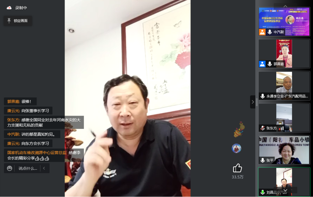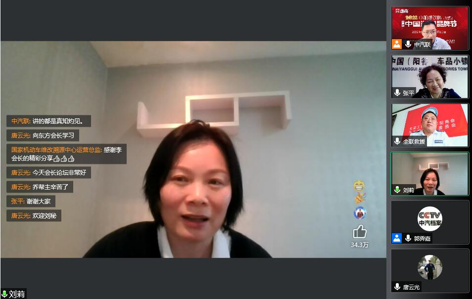 2022年10月12日,2022中國商協會會長對話品牌建設私享會在線上成功舉行,廣東省汽車配件用品行業商會會長李立全、鄭州市汽車服務業商會會長張東方、濟南重汽零部件協會會長劉昌勇、全國工商聯汽摩配商會救援委員會會長李錚、陽谷汽車用品行業協會會長張平等五位會長作為嘉賓參與品牌建設與產業高質量發展,得到了企業的廣泛關注,點贊量達到了350000個。私享會由中汽聯執行會長、中汽協汽車技術研究院院長喬永鋒主持。