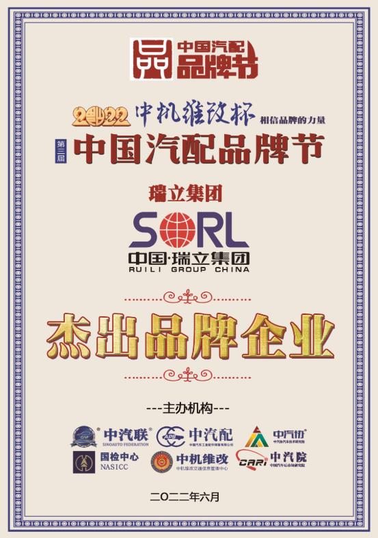 瑞立榮膺2022中國汽配行業兩項品牌大獎!
