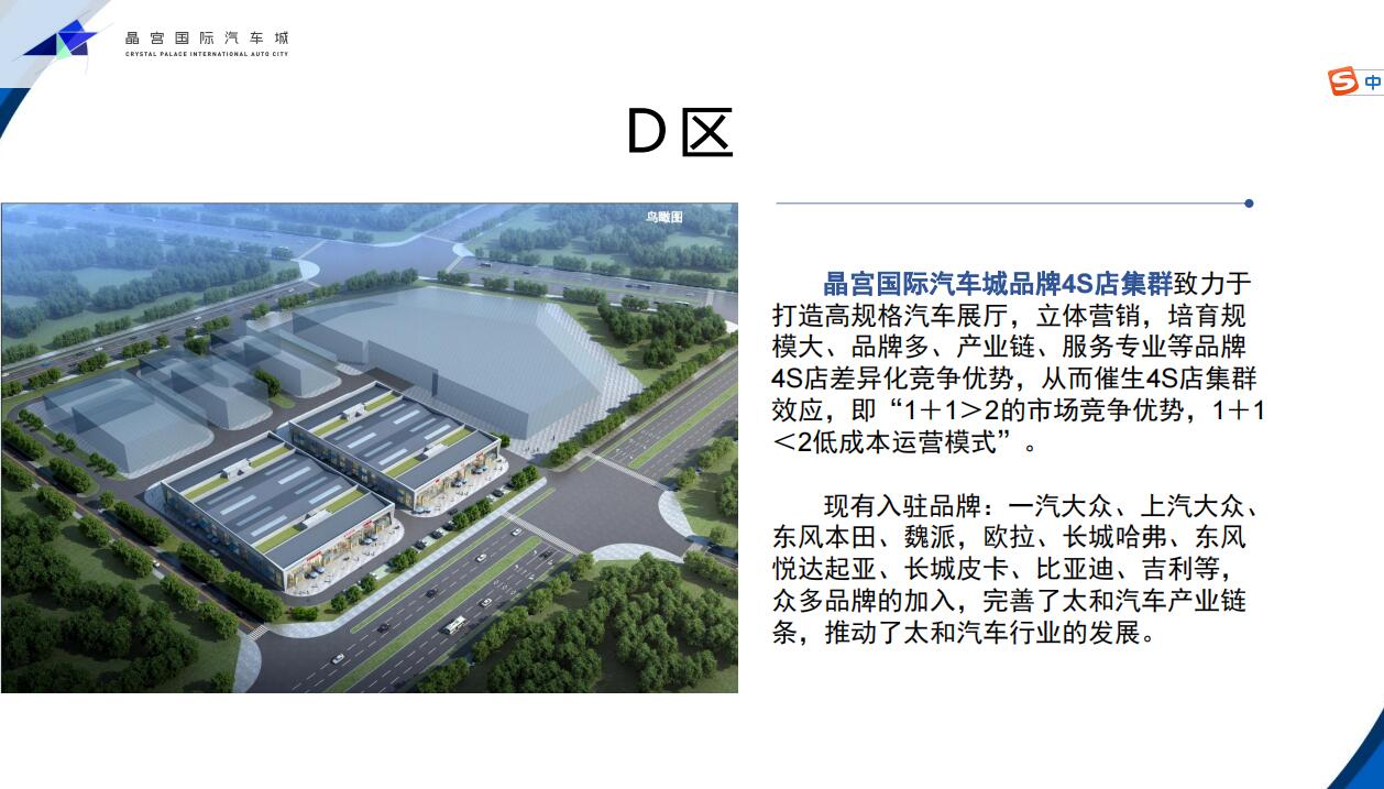 晶宮汽車城規劃三年內完成對周邊一百公里核心輻射,比肩國內一類汽車專業市場,讓太和人民買車、賣車、修車、養車一站式。