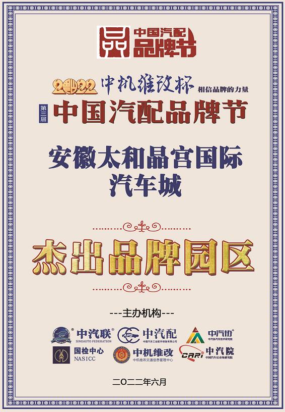 安徽太和晶宮國際汽車城榮膺2022中國汽配杰出品牌園區大獎