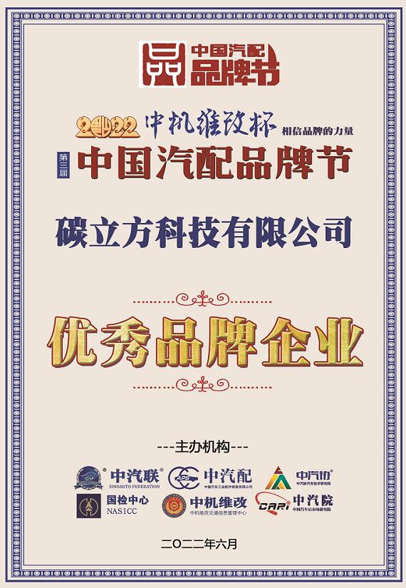 據《2022中國汽配品牌榜》榜單顯示:碳立方科技有限公司榮膺2022中國汽配優秀品牌企業大獎
