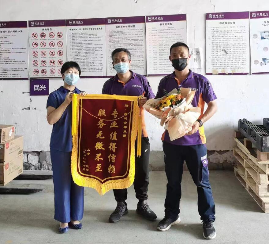 專業服務贏得客戶信賴,跨越速運金都點部獲贈錦旗表彰!