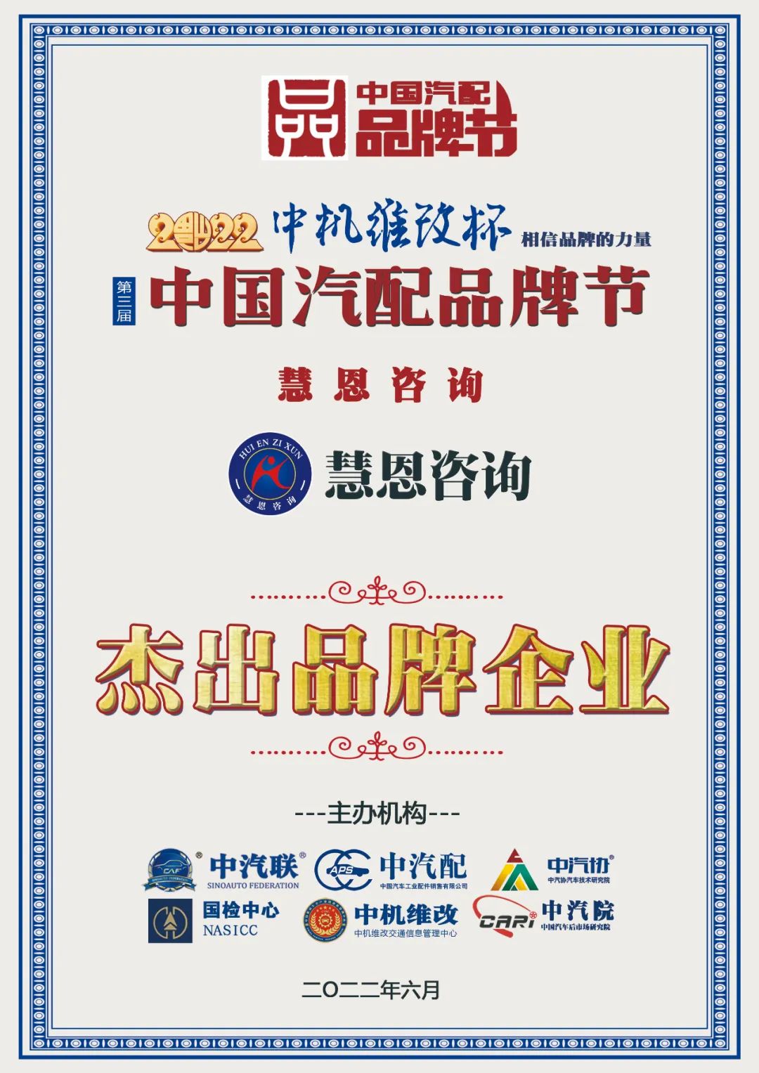 慧恩咨詢榮膺2022中國(guó)汽配行業(yè)杰出品牌企業(yè)大獎(jiǎng)