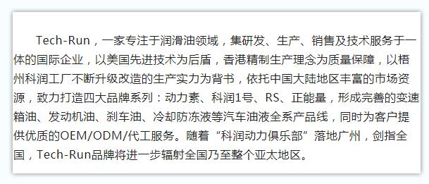 Tech-Run,于2019年度,完成了DEXRON®-VI認證,并附加于自有四大品牌體系。