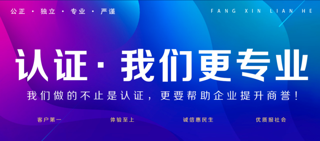 以誠信惠民生,優質報社會為使命,致力于成為認證領域的引領者,讓客戶享受增值服務。努力實現通過我們的認證服務讓您認證放心,讓通過認證的企業為您提供的服務和產品放心。