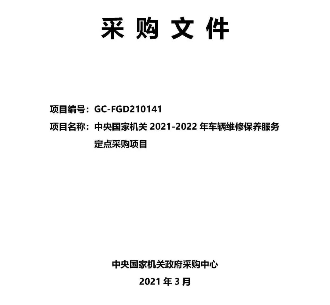 中央國家機關2021-2022年車輛維修保養服務定點采購項目招標文件中,《放心汽修認證評價規范》標準繼續納入車輛維修企業成為定點采購考評范圍之一,詳文如下: