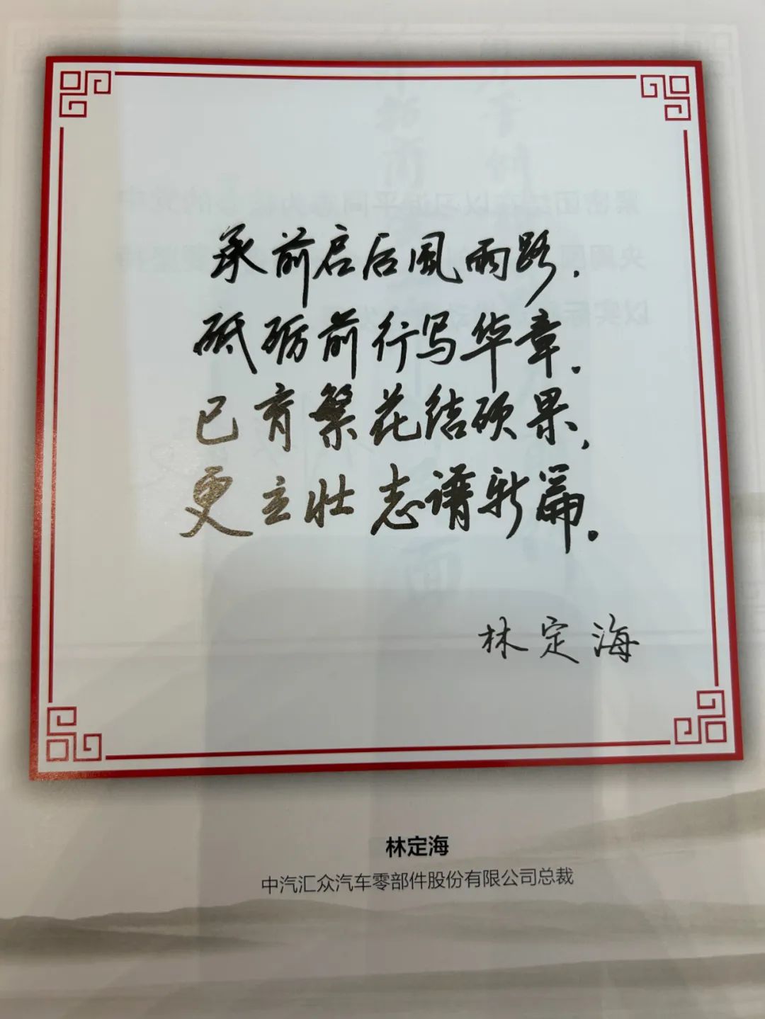 熱烈祝賀中汽匯眾汽車零部件股份有限公司總裁林定海