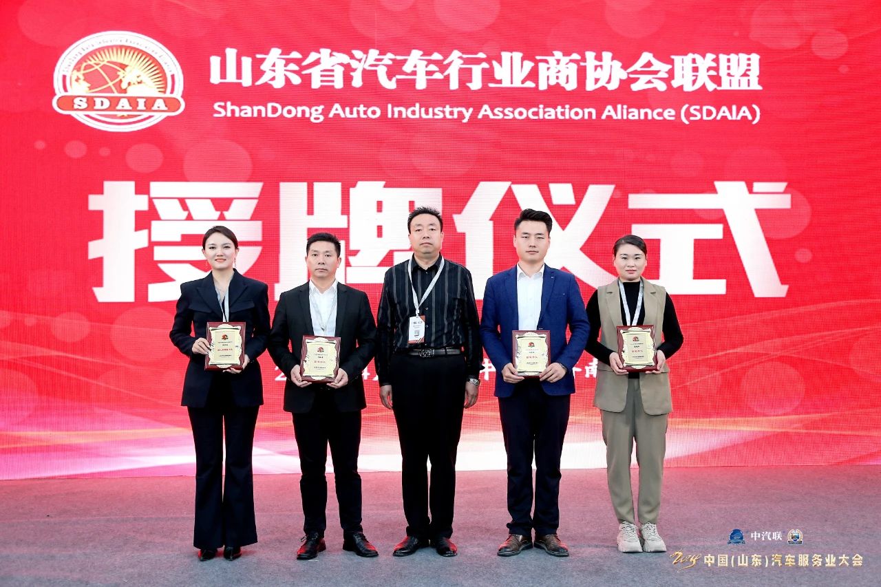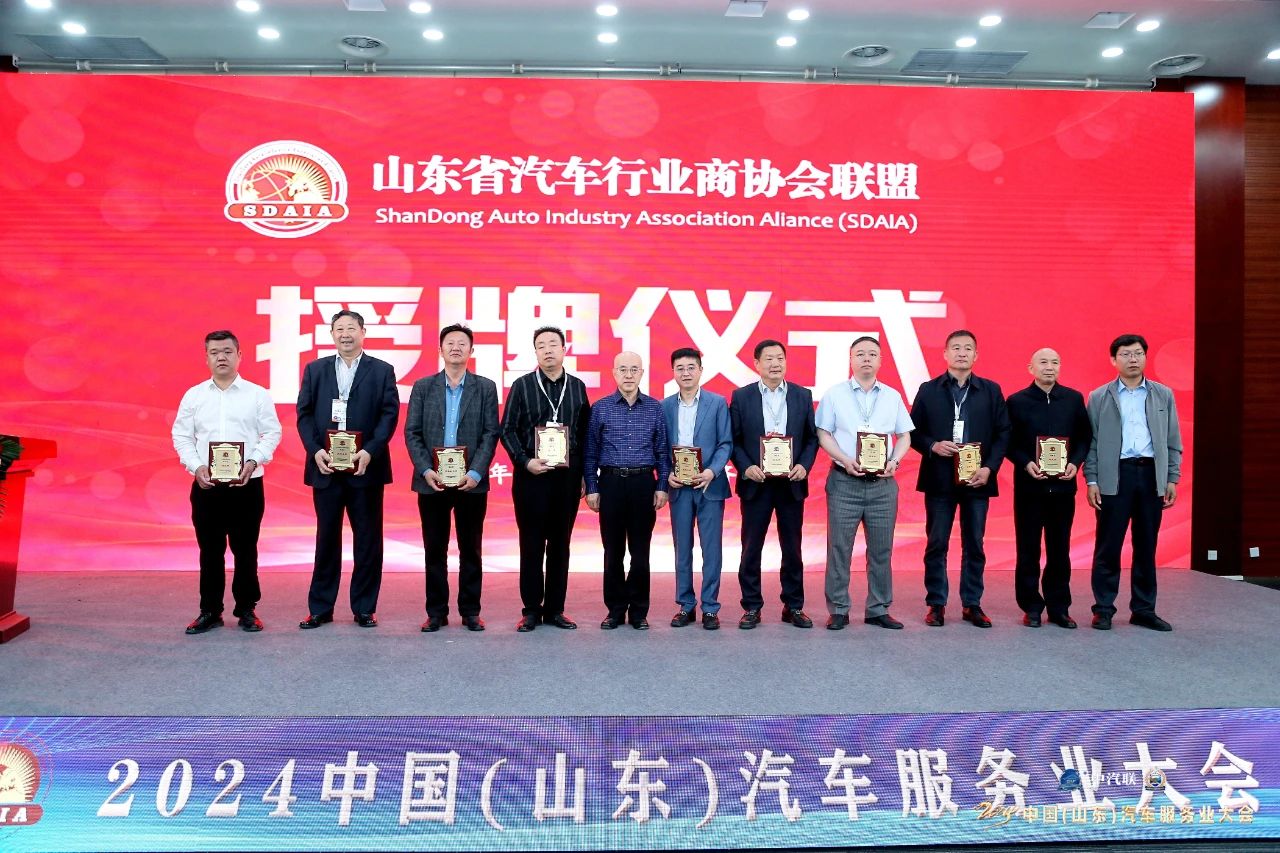 中國汽車服務業委員會會長王篤洋、全國機動車數字化專委會執行會長喬永鋒共同為山東省汽車行業商協會聯盟名譽主席方子盛,主倪付慶,執行主席劉昌勇,常務副主席侯念湖,副主席安子亮、楊寶富、劉超、郁善濤、王法德、張振軍頒發銅牌。