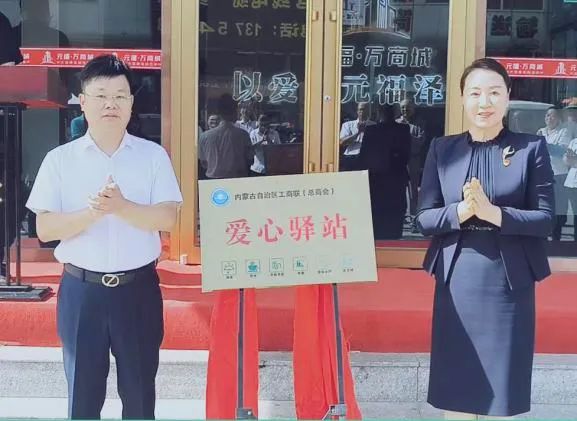 2023年8月31日,內蒙古自治區工商聯(總商會)呼和浩特市首家“愛心驛站”(由內蒙古商貿物流與服務業協會和內蒙古汽車行業協會共同籌建)在元福·萬商城舉辦了揭牌儀式,自治區工商聯黨組成員、副主席白春艷出席揭牌儀式,并與協會會長謝友興共同為“愛心驛站”揭牌。