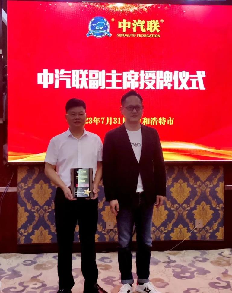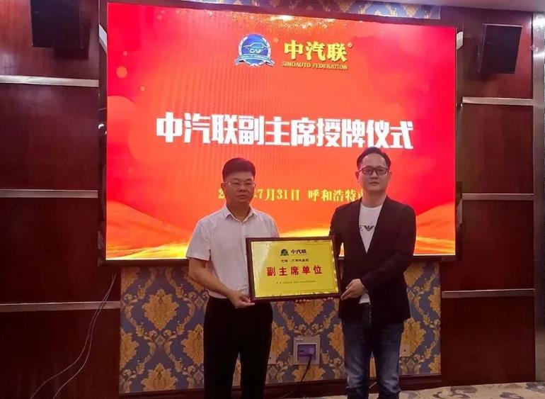 會上,中汽聯授予內蒙古汽車行業協會、內蒙古元福·萬商城集團為中汽聯副主席單位 ,中汽聯主席賈公棋為內蒙古汽車行業協會會長謝友興頒授了中汽聯副主席銅牌。