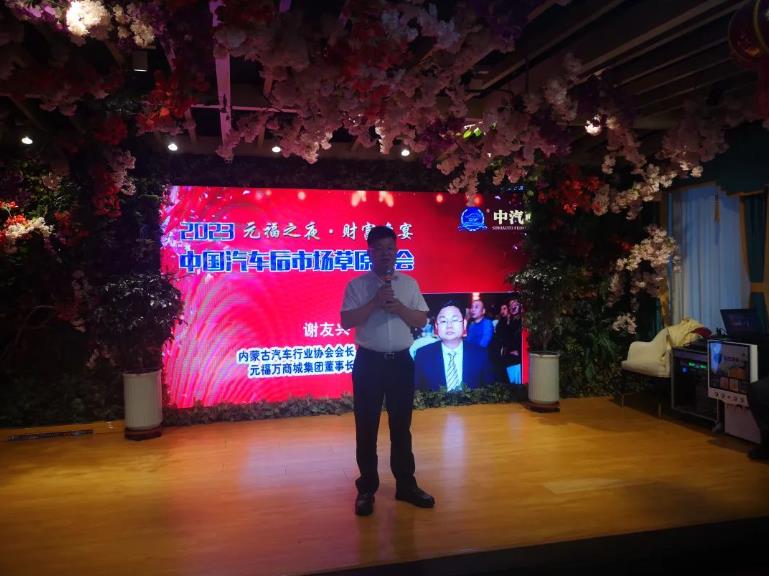 內蒙古汽車行業協會會長、內蒙古元福·萬商城集團董事長謝友興致詞,謝會長著重介紹了內蒙古地區汽車行業的形勢、行業協會作用的發揮及會長單位元福·萬商城發展趨勢,使參會人員對內蒙古、呼市的營商環境有了深入的了解,對首府的招商引資做了詳實的宣傳。