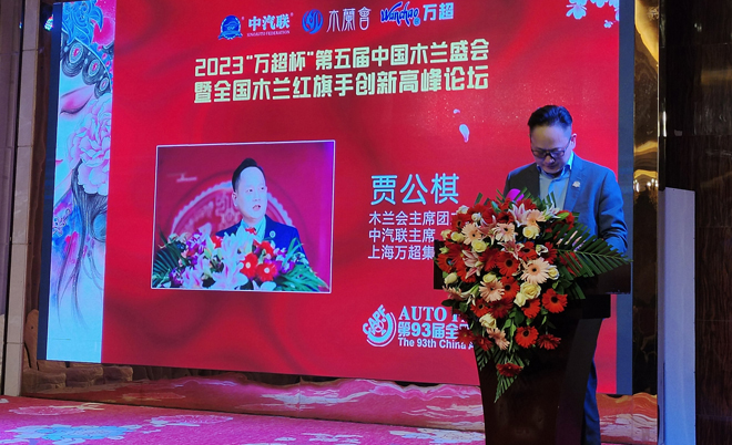 中汽聯主席、木蘭會主席團主席、上海萬超汽車天窗有限公司董事長賈公棋宣讀2023萬超杯《中國汽車業木蘭宣言》