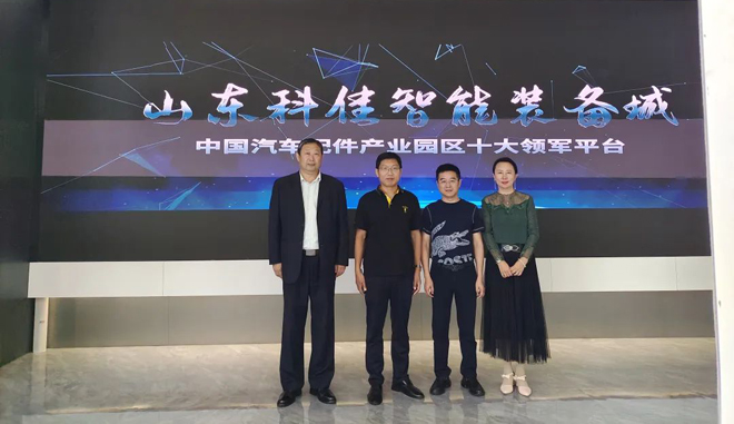 中汽聯執行會長喬永鋒,副主席劉昌勇,秘書長郭霽嘉一行到山東科佳智能裝備城走訪調研,董事長方子盛接待。