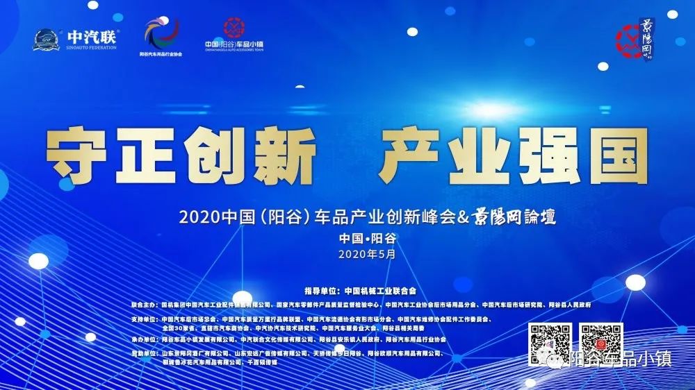 5月30日,由國機集團中國汽車工業(yè)配件銷售有限公司、國家汽車零部件產(chǎn)品質(zhì)量監(jiān)督檢驗中心、中國汽車工業(yè)協(xié)會后市場用品分會、中國汽車后市場研究院、陽谷縣人民政府主辦,陽谷車品小鎮(zhèn)發(fā)展有限公司、中汽聯(lián)合文化傳媒有限公司、陽谷縣安樂鎮(zhèn)人民政府、陽谷汽車用品行業(yè)協(xié)會承辦的2020首屆中國(陽谷)車品產(chǎn)業(yè)創(chuàng)新峰會&景陽岡論壇活動在陽谷景陽岡酒店三樓景陽岡廳隆重舉行。來自全國汽車行業(yè)的行業(yè)專家、主協(xié)辦單位領導、商會協(xié)會領導、生產(chǎn)企業(yè)代表、產(chǎn)業(yè)基地聯(lián)盟代表、其他行業(yè)代表等100多人歡聚一堂,共同探討在復雜多變的國際國內(nèi)市場環(huán)境中,尤其是疫情之后如何重塑中國汽車產(chǎn)業(yè)發(fā)展新格局,如何加強車品品牌建設以及如何將陽谷車品小鎮(zhèn)打造成中國車品第一鎮(zhèn)等話題展開討論。