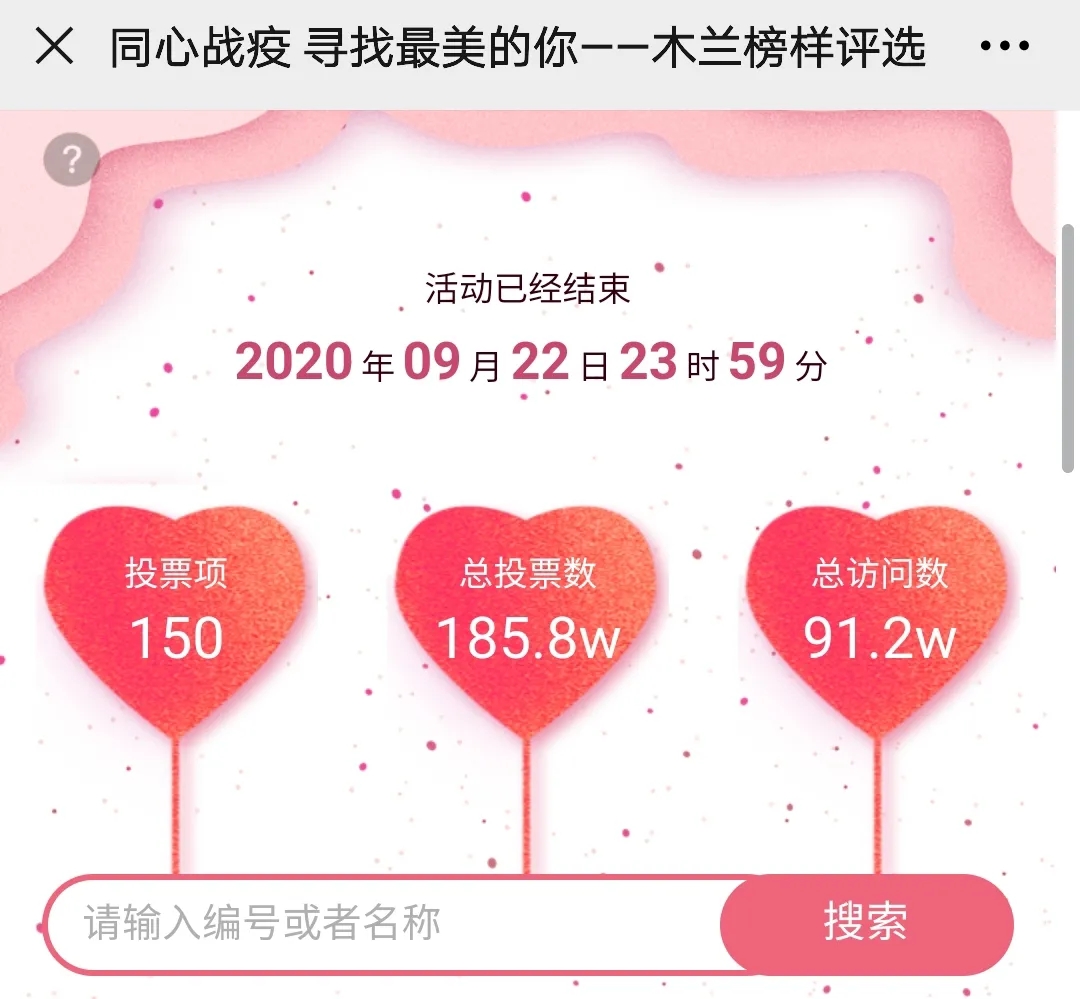 同心戰疫,尋找最美的你——“中國木蘭人氣榜樣網絡評選”共有150位木蘭參與激烈角逐,歷時10天,于9月22日24:00已圓滿落下帷幕。總訪數超過912595人次,總投票數達到1858629票,受到了汽車行業企業家們的廣泛關注與積極參與,在汽車行業掀起了一股木蘭熱潮,紛紛為自己心中的木蘭榜樣投票,投票系統一再擁堵,前四名爭奪戰尤其激烈,4人總票數達到了105萬票。