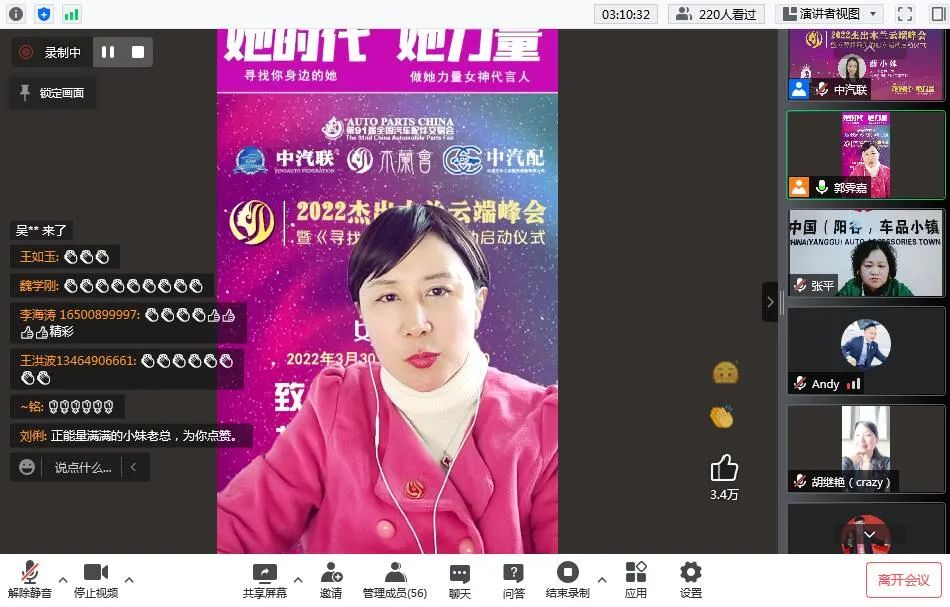 2022年3月30日,“致敬‘她’力量 擁抱‘她’時代”為主題的“2022杰出木蘭云端峰會暨《尋找最美的您》系列活動啟動儀式”在線上成功舉辦。本次峰會由第91屆全國汽車配件交易會特別支持,中汽聯、木蘭會、中國汽車工業配件銷售有限公司主辦。峰會聚焦當代女性價值觀理念,探討如何在生機與挑戰共存、創新與奮斗并進的時代,克服困難突破局限,激發內心力量,綻放女性光芒等社會關注話題,全面剖析木蘭創業心路歷程,再現木蘭在推動企業創新發展過程中舉足輕重的力量,以奔跑奮進的姿態,譜寫木蘭“半邊天”的壯麗詩篇,以特殊的方式迎接黨的二十大勝利召開,助推中國汽車產業高質量發展!