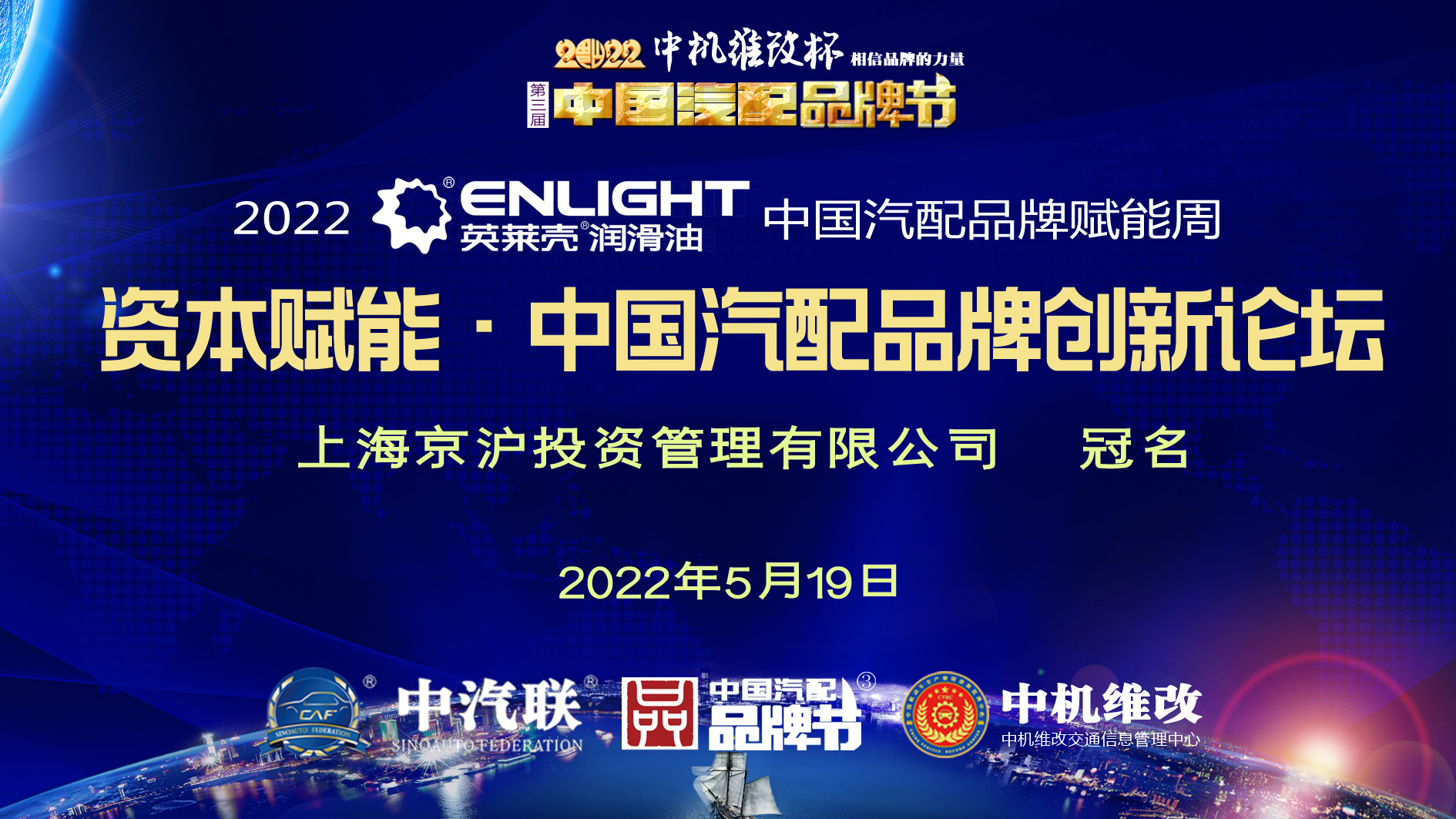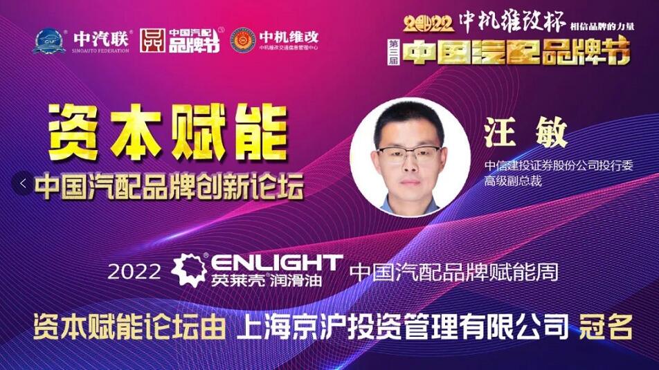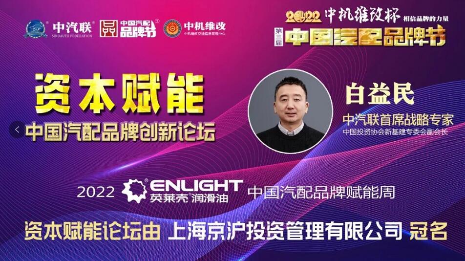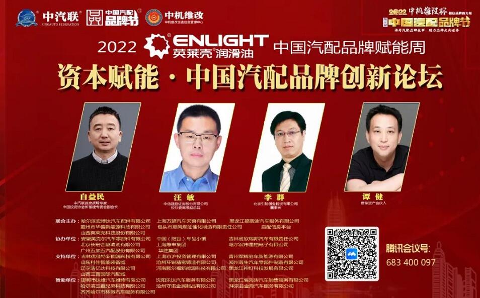 2022中國汽配品牌賦能周由山西英萊殼科技股份有限公司獨家冠名,在線上舉辦的賦能周第四場活動“資本賦能·2022中國汽配品牌創新論壇”由上海京滬投資管理有限公司冠名特約播出,這是2022中機維改杯第三屆中國汽配品牌節系列活動的第六場活動。