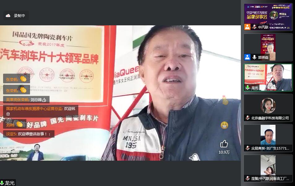 成都國光三菱配件有限公司董事長譚國先 分享了他創立的“國先”品牌故事。譚總是中國汽車零部件行業領軍人物、中國汽配行業大國工匠、汽配行業德高望重的資深專家、成都國光三菱配件有限公司董事長,他公司研發的“國先牌陶瓷剎車片”不論是質量還是耐用度,均已超越了日本制造的同類產品,成為享譽華夏的優秀民族品牌。他指出一定要大力發展民族品牌,國貨當自強,成為汽配品牌強國。