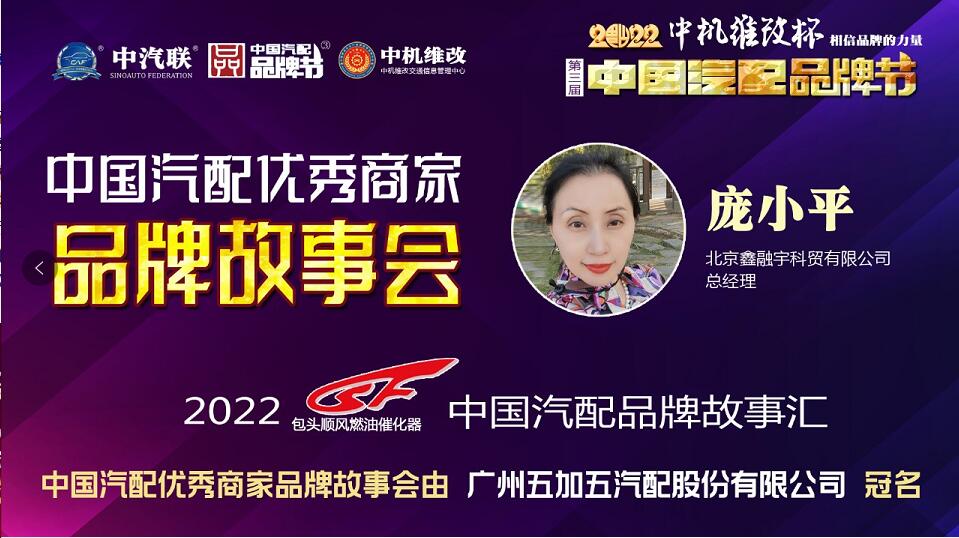 北京鑫融宇科貿有限公司總經理龐小平 分享了她的品牌故事,她談了對汽配行業的發展及認知,認為選擇比努力更重要,希望利用好中汽聯平臺,做好各種資源對接,讓大家共同發展成長。她認為在疫情新常態下,有一定的焦慮感,但還是堅定行業發展信心,做一個有情懷的汽配人,為行業高質量發展貢獻力量。