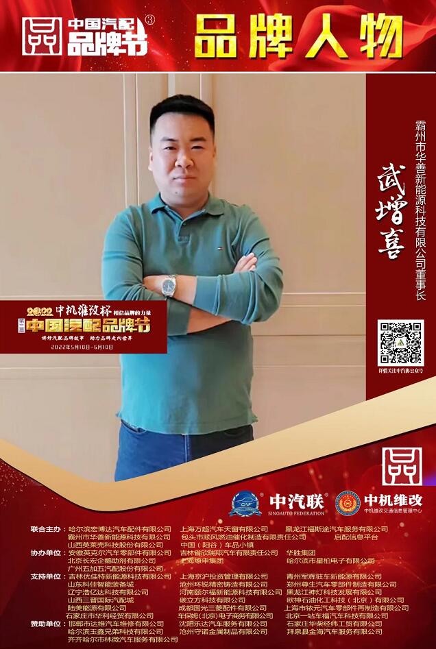2022中機維改杯中國汽配品牌節由中機維改交通信息管理中心獨家總冠名,由中汽聯、中汽配、中機維改共同主辦;哈爾濱宏博達汽車配件有限公司、上海萬超汽車天窗有限公司、中國(陽谷)車品小鎮、黑龍江福斯途汽車服務有限公司、包頭市順風燃油催化器制造有限責任公司、霸州市華善新能源科技有限公司、啟配信息平臺、山西英萊殼科技股份有限公司聯合主辦;由華勝集團、上海燎申集團、吉林欣瑞邦汽車有限責任公司、安徽英克爾汽車零部件有限公司、北京長宏企鵝助劑有限公司、哈爾濱市星柏電子有限公司、廣州五加五汽配股份有限公司友情協辦;由吉林優佳特新能源科技有限公司、上海京滬投資管理有限公司、青州軍輝駐車新能源有限公司、山東科佳智能裝備城、鄭州尊生汽車零部件制造有限公司、滄州環銳精密鑄造有限公司、遼寧浩億達科技有限公司、河南頤爾福新能源科技有限公司、黑龍江神燈科技發展有限公司、山西三晉國際汽配城、歐神石油化工科技(北京)有限公司、碳立方科技有限公司、陸美能源有限公司、上海市銥元汽車零部件再制造有限公司、成都國光三菱配件有限公司、石家莊市華利經貿有限公司、車保姆(北京)電子商務有限公司、北京一站車福汽車科技有限公司、正宜汽車網 特別支持;邯鄲市達維汽車維修有限公司、沈陽樂達汽車服務有限公司、哈爾濱玉鑫兄弟科技有限公司、滄州守諾金屬制品有限公司、拜泉縣金海汽車服務有限公司、齊齊哈爾市林微汽車服務有限公司、石家莊華柴經緯工貿有限公司 友情贊助;由德州市鑫雙恒汽車服務有限公司、浚縣李春亮汽車維修門市部 、滄州春立汽車服務有限公司、臨沂富裕汽車服務有限公司、綏中縣宏騰汽車服務有限公司、榆樹市鑫運程汽車服務限公司、綏中縣鑫發汽車服務有限公司、臨清市浩航汽車服務有限公司、中能國業(北京)科技有限公司特別祝賀。