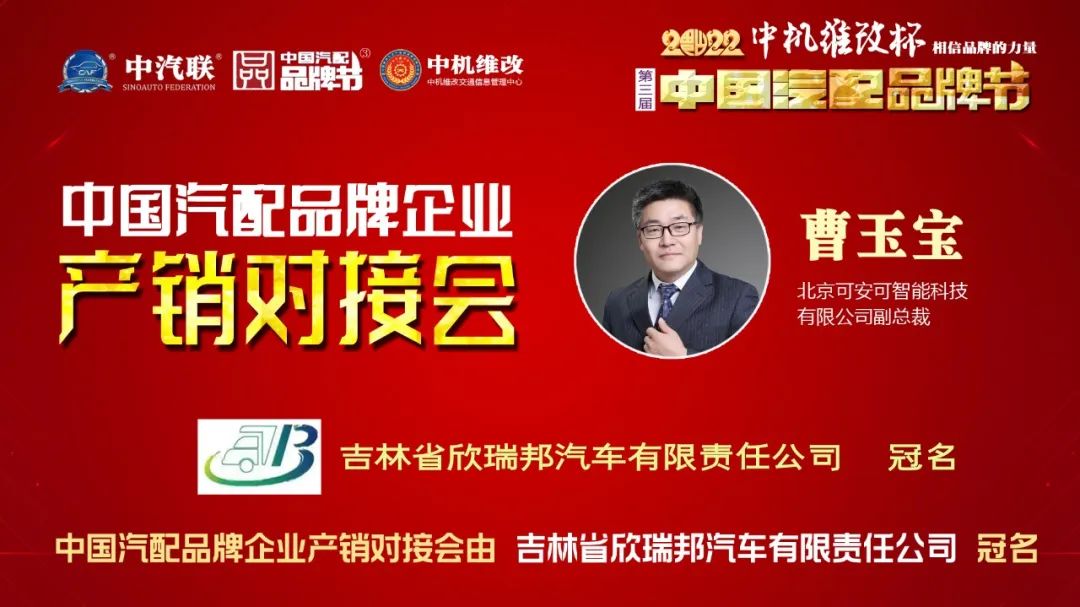 2022年6月1日,“2022 福斯途杯 中國汽配企業品牌秀”的第三場活動,由 吉林省欣瑞邦汽車有限責任公司 特約冠名播出的2022中國汽配品牌企業產銷對接會在線上成功召開,吉林省欣瑞邦汽車有限責任公司董事長王懷寶、商丘市珂辰汽車零配件有限公司總經理朱新海、山東萊克科技有限公司品宣部長孫晶、北京可安可智能科技有限公司副總裁曹玉寶等嘉賓出席汽配企業品牌秀并做了精彩分享,引起了行業的廣泛關注,點贊數量達到56萬個。2022中國汽配品牌企業產銷對接會由中汽聯執行秘書長、中國汽配品牌節常務秘書長徐銘主持。