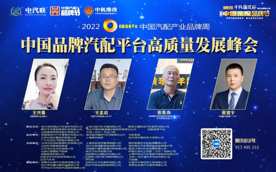 2022年6月8日,“2022 啟配信息平臺(tái)杯 中國(guó)汽配產(chǎn)業(yè)品牌周”的第三場(chǎng)活動(dòng),由 啟配信息平臺(tái) 特約冠名播出的2022中國(guó)品牌汽配平臺(tái)高質(zhì)量發(fā)展峰會(huì)在線上成功舉行,啟配信息平臺(tái)創(chuàng)始人王興菊,正宜汽車(chē)網(wǎng)創(chuàng)始人&CEO 王忠啟,洋羊網(wǎng)聯(lián)合創(chuàng)始人、珠海橫琴洋羊網(wǎng)絡(luò)科技有限公司 CEO張勇功,車(chē)保姆汽配推廣 CEO 張?chǎng)?等四位汽配平臺(tái)大咖出席汽配產(chǎn)業(yè)品牌周并做了精彩分享,引起了廣泛關(guān)注,點(diǎn)贊數(shù)量達(dá)到28萬(wàn)個(gè)。