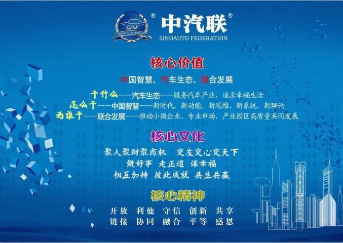 中國智慧,就是中國政府及其人民,在淵源流長的歷史長河中所去偽存真而發展起來的中國的傳統文化、中國的價值觀、中國的哲思觀,是我們全體中汽聯人奮發向上、創新共生的精神法寶,更是中汽聯企業踐行“新時代、新動能、新思維、新系統”等新理論的思想源泉。汽車生態,就是響應國家節能減排降碳的號召,中汽聯打造綠色低碳的汽車生態,為汽車人對美好生活的向往獻智力、增活力、添動力、聚合力,積極推動企業升級和企業家幸福成長,構建“低碳綠色”的全新生態。聯合發展,就是中汽聯要幫助所有的合作伙伴協同發展、融合發展、共同發展,共同移動汽車產業的高質量發展。