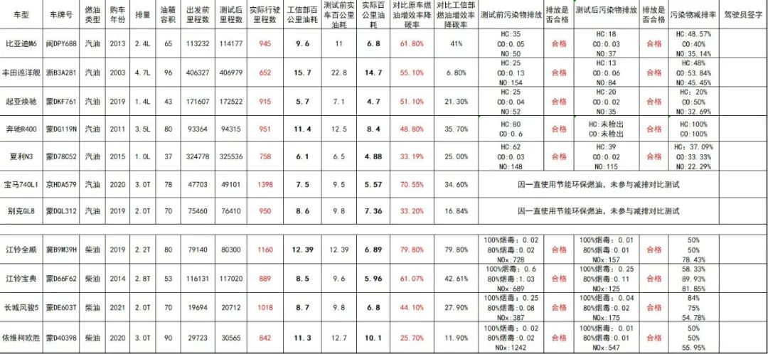 8月2日上午,在4位赤峰市人大代表、政協委員、林西電視臺及多位嘉賓的的見證下,對油箱的封條進行拆封,對11輛參賽車輛實際行駛公里數及實際油耗進行測算,道路實際測試結果盛大揭曉,均取得了顯著效果。