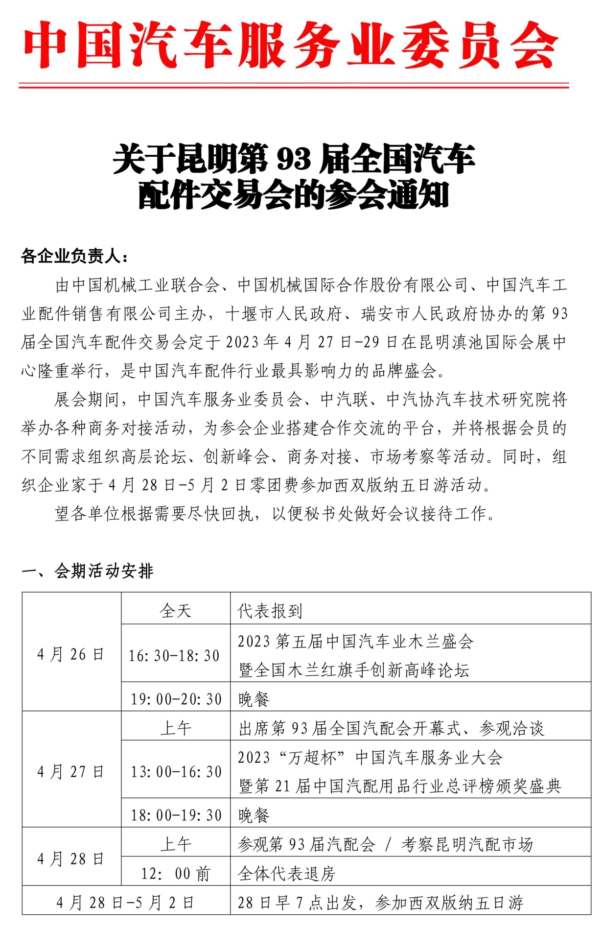 關于昆明第93屆全國汽車配件交易會的參會通知