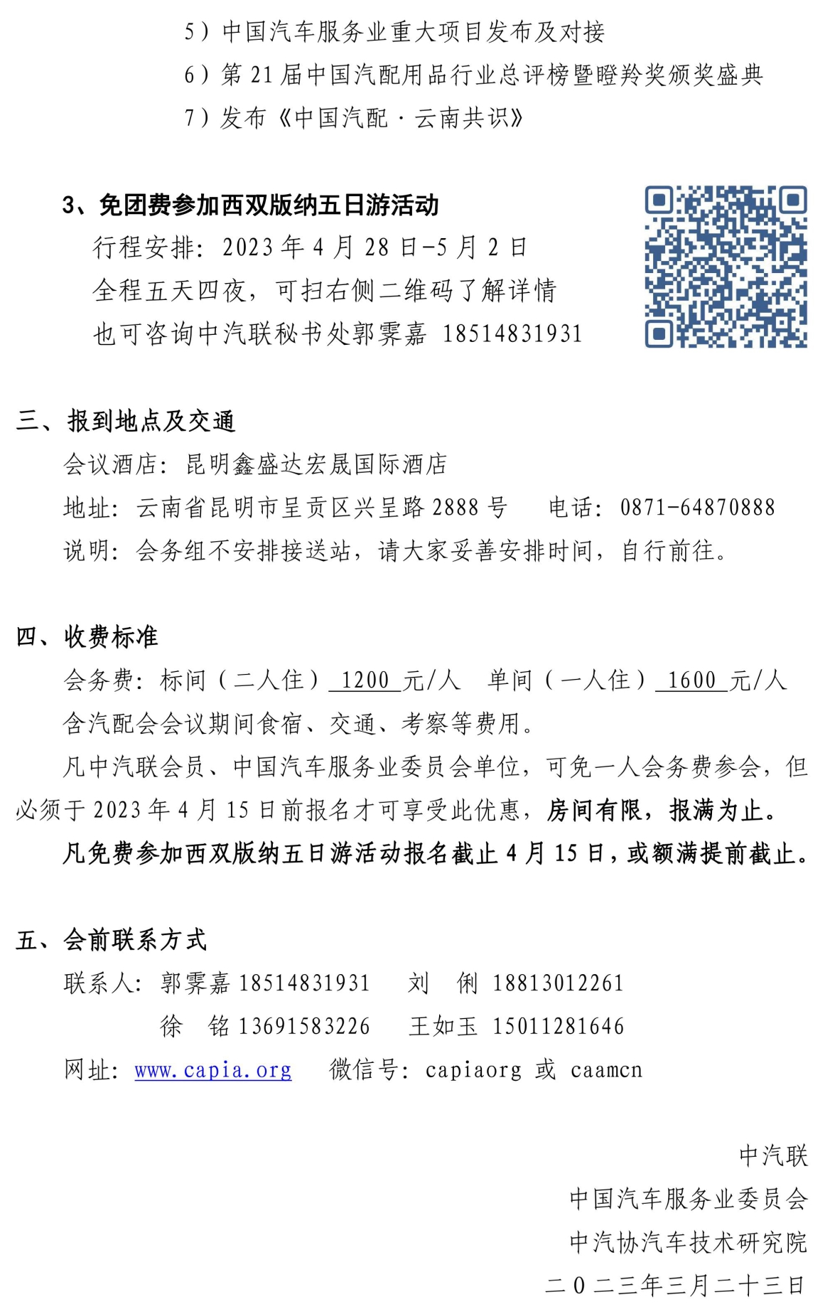 凡中汽聯會員、中國汽車服務業委員會單位,可免一人會務費參會,但必須于2023年4月15日前報名才可享受此優惠,房間有限,先到先得,報滿為止。
