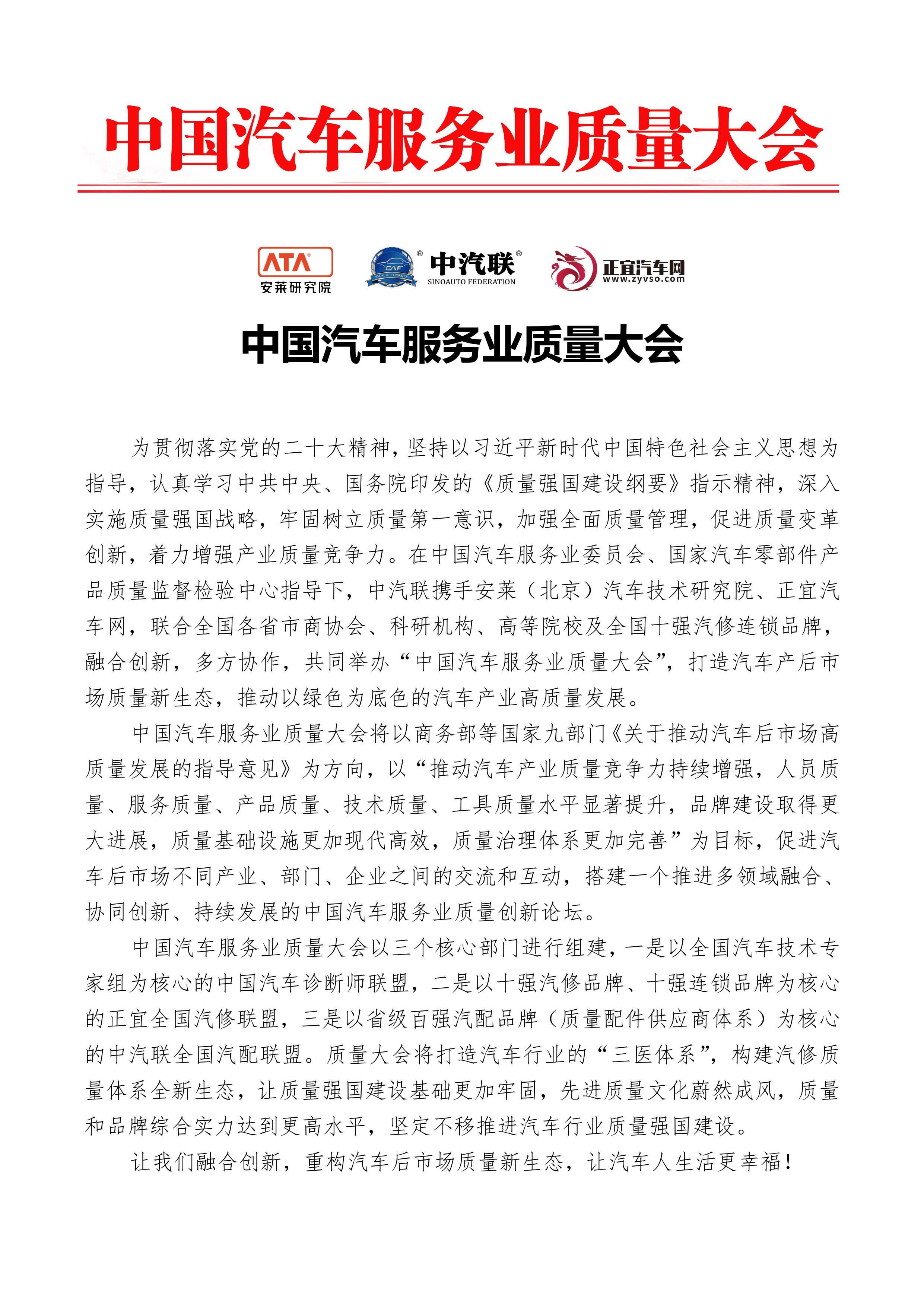 2023中國汽車服務業質量大會參會通知