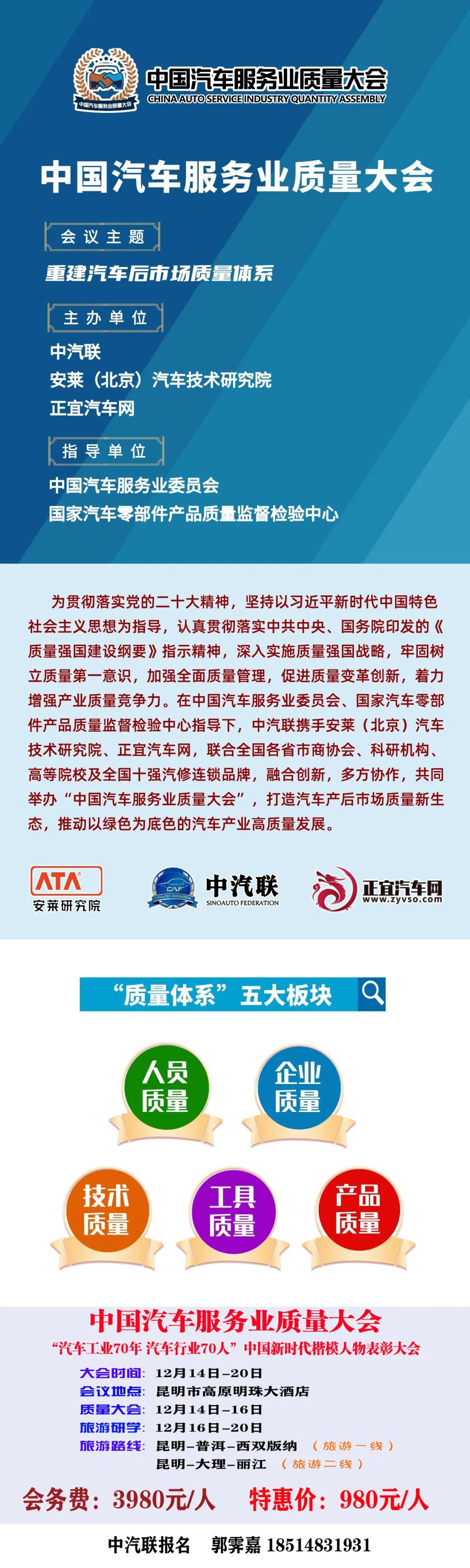 質量大會會務費:3980元/人 ,中汽聯對會員參會進行大額補貼,