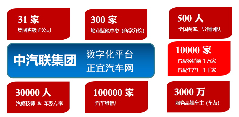 中汽聯集團未來五年將建立31家升級分子公司,建立300家地市級賦能中心,組建超過500人的專家、導師團隊,整合1000家汽車配件生產廠家(品牌),聯合10000家汽車配件經銷商,攜手全國30000名汽車修理技師和不同車系的專家,賦能全國100000家汽車維修廠,為全國的3000000萬名高端車主服務。同時,中汽聯集團文化也進行了全新發布: